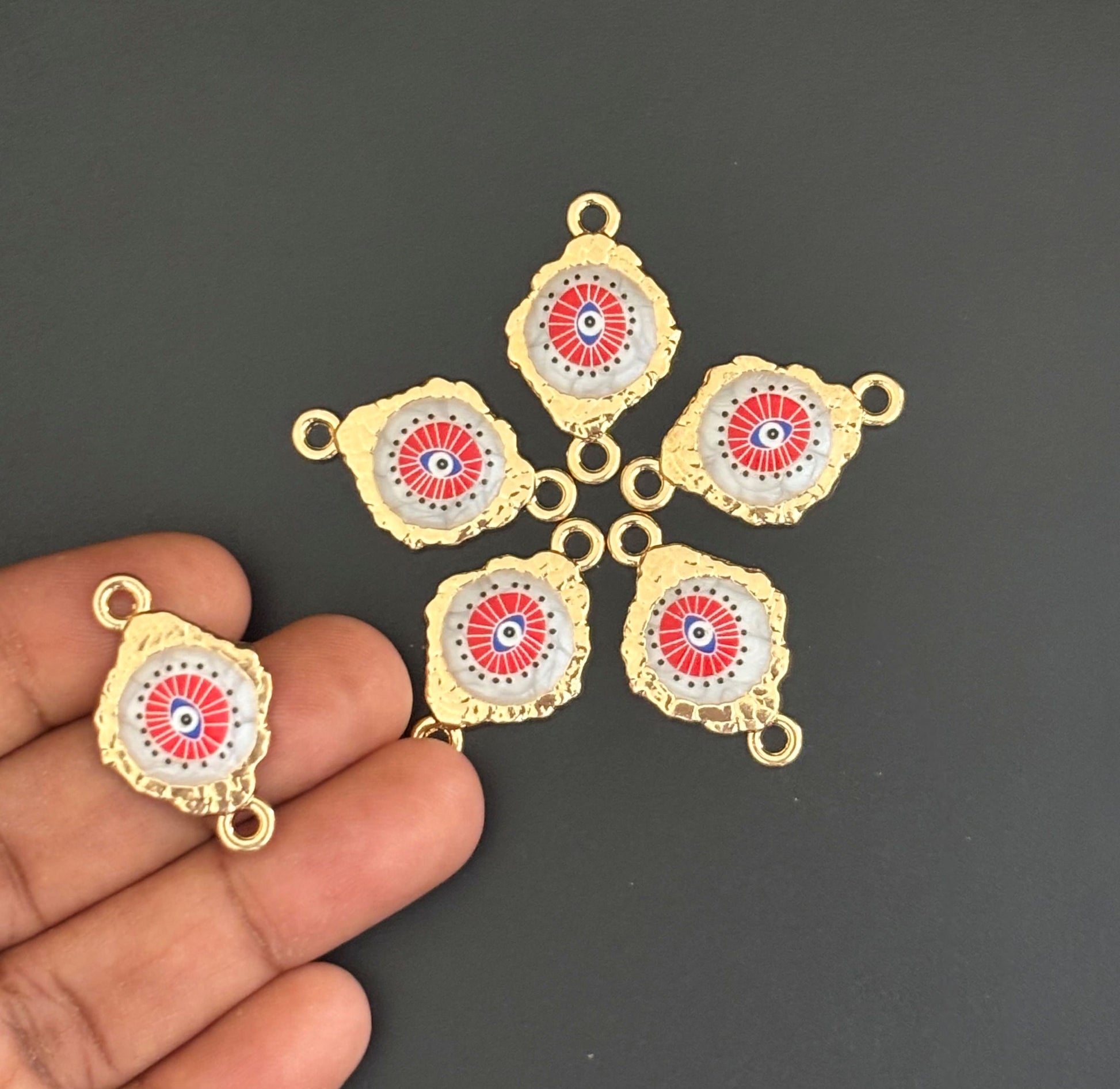 Red and Blue Gold Plated Evil Eye Resin Charms