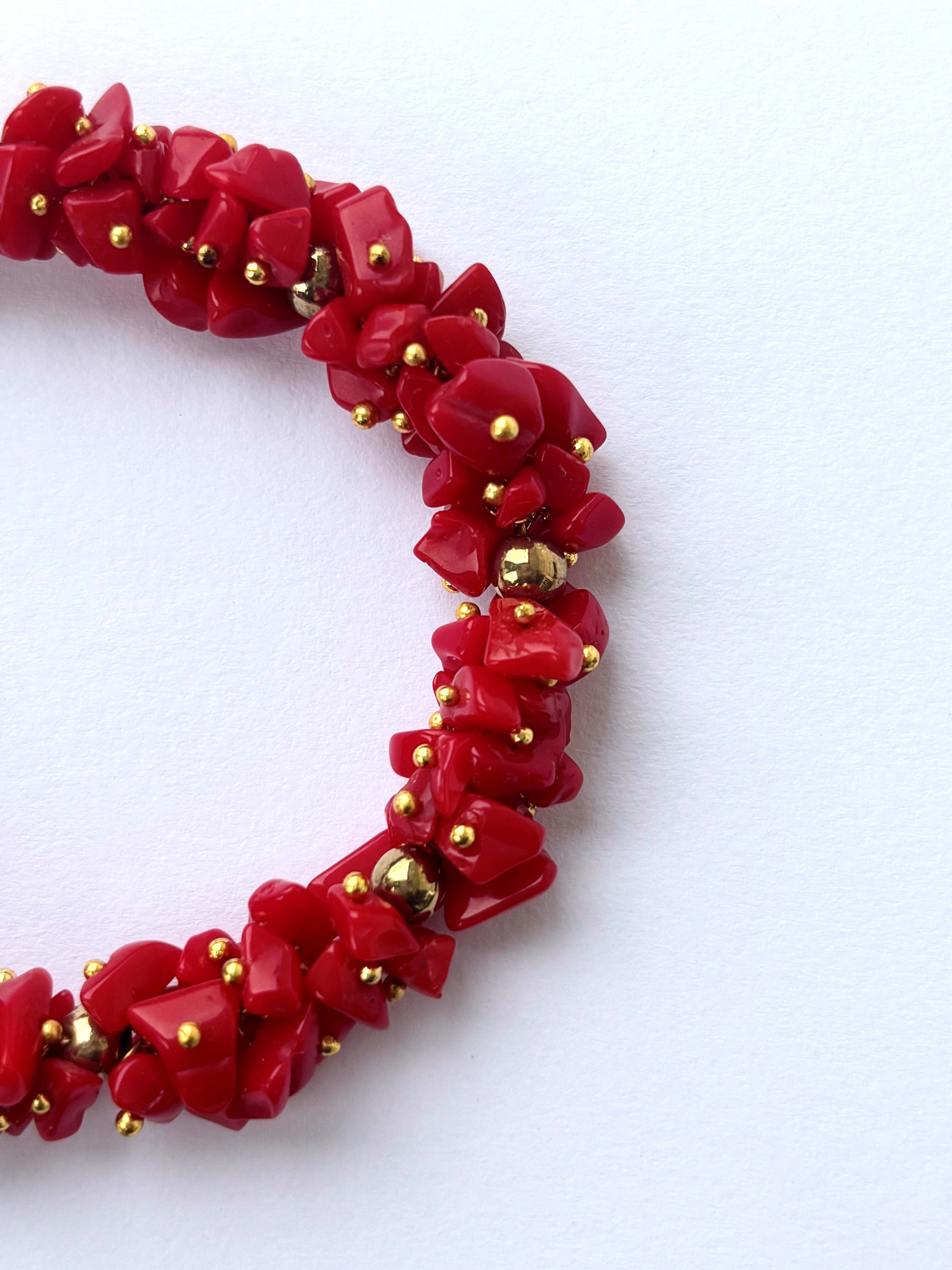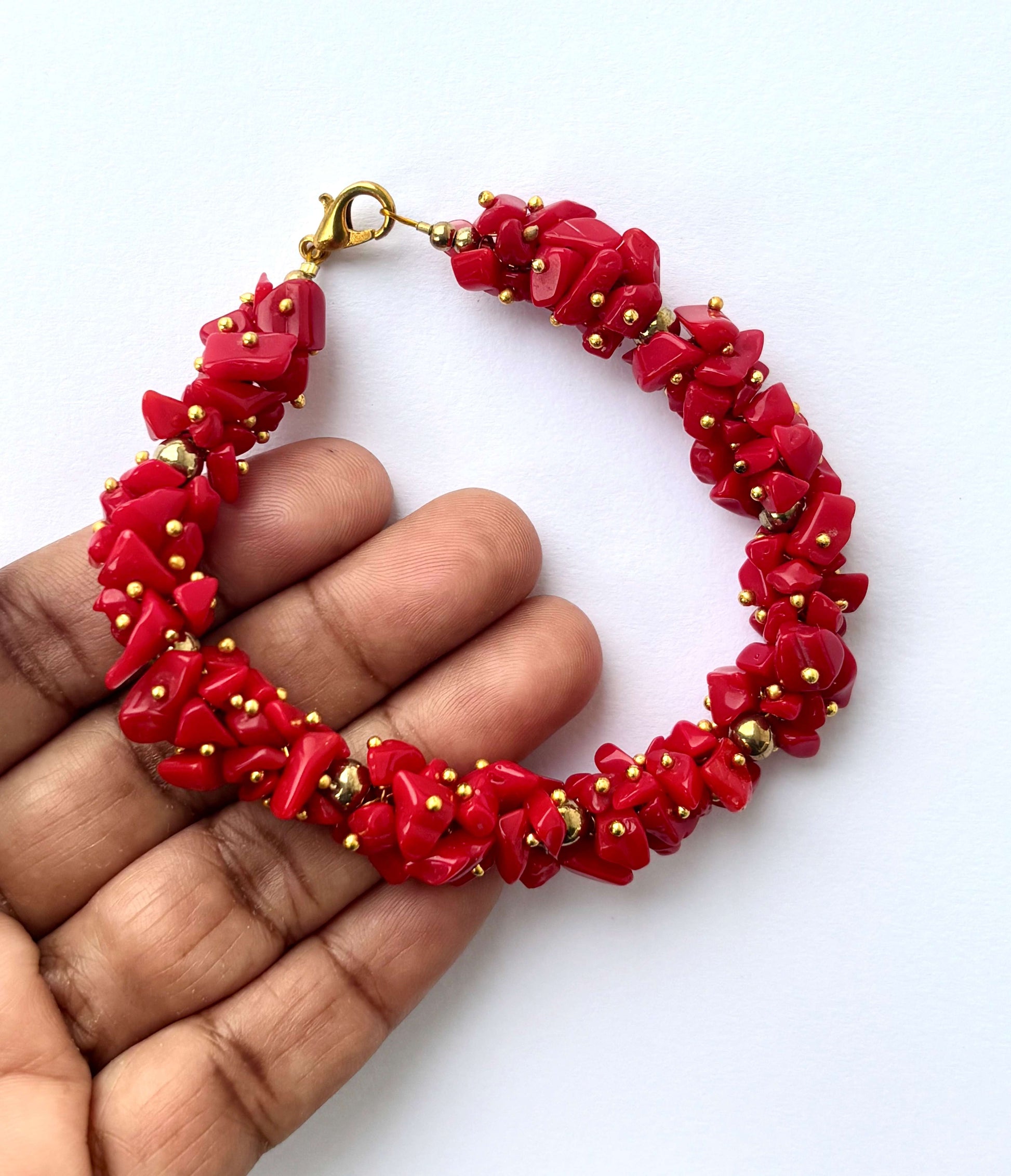 Red Coral Chip Bracelet with Gold Spacer Beads