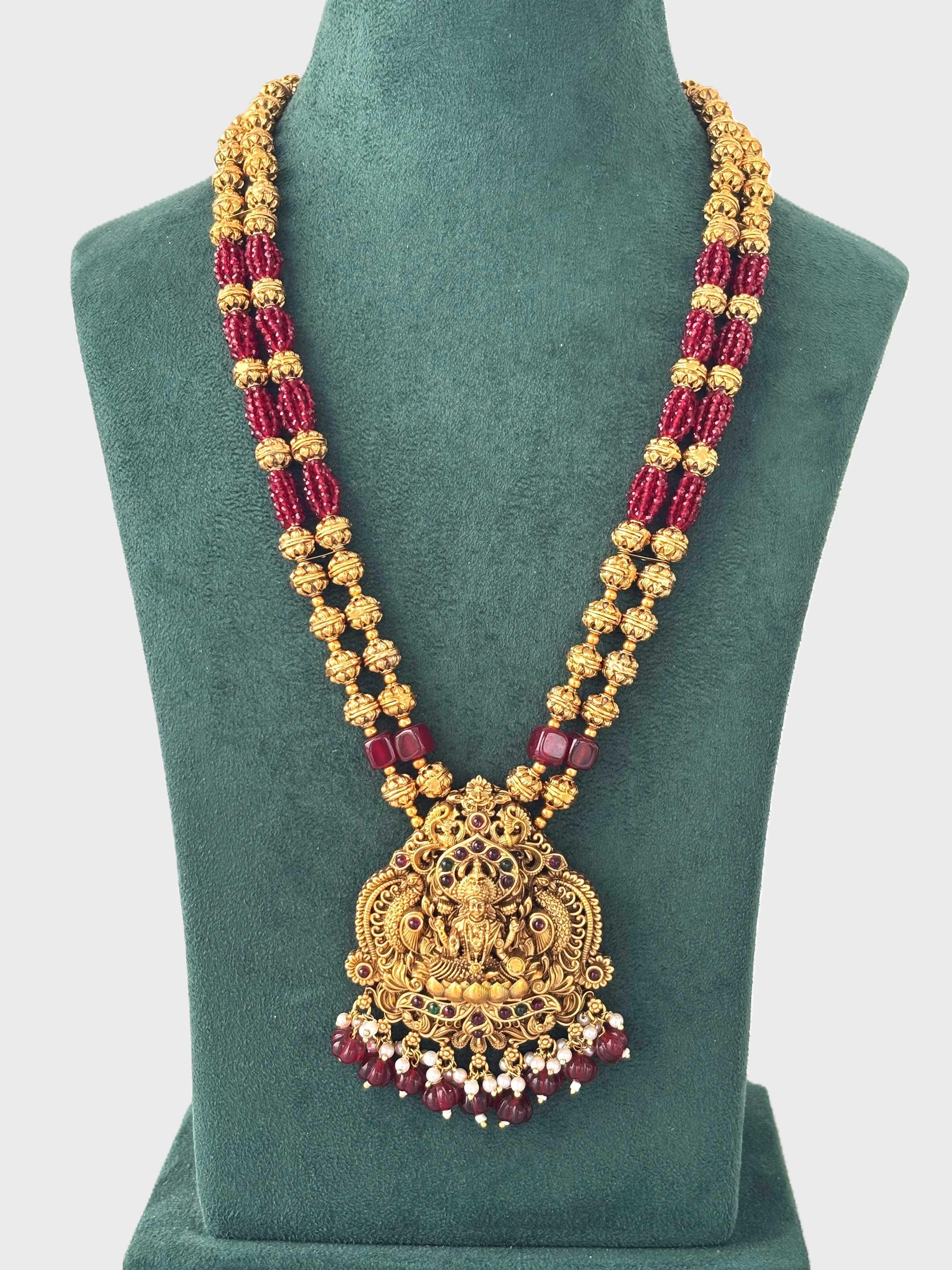 Red Hydro Beads with Lakshmi Pendant Necklace