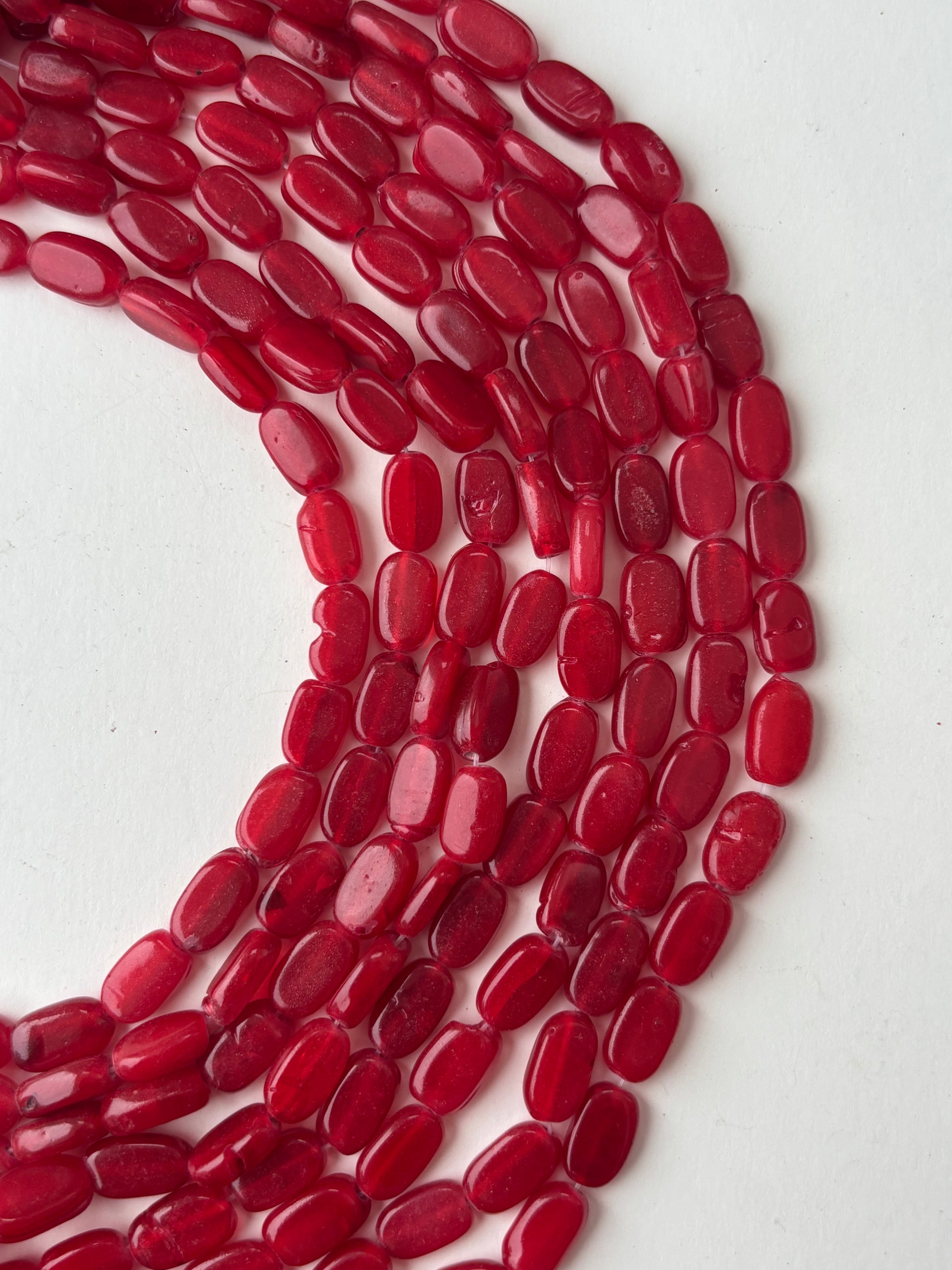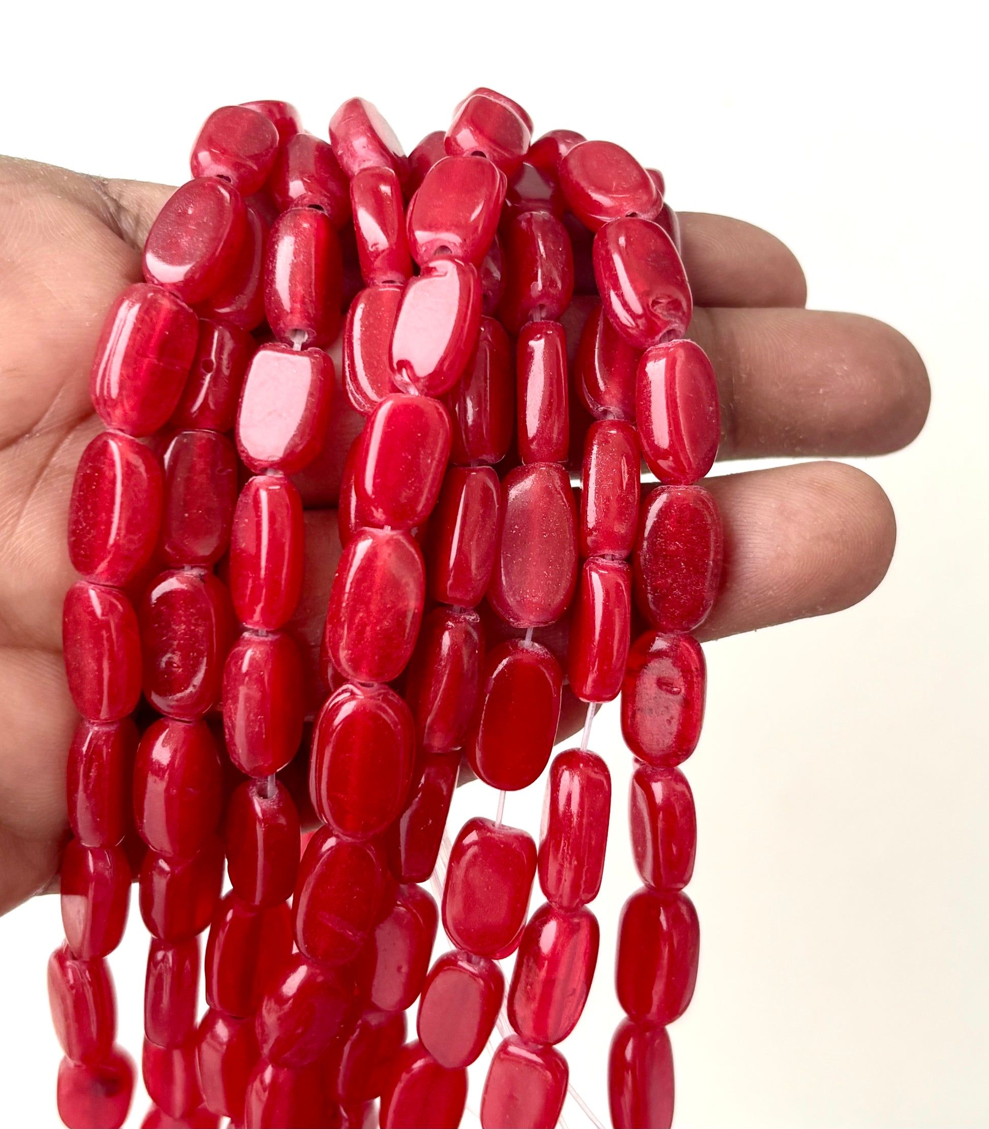 Discover vibrant red oval flat beads with a smooth, spray-painted finish. Perfect for adding a pop of color to your jewelry making, crafting, and DIY projects. Sold by single strand, size 11x6MM, length 13 inches with 28 beads approximately.