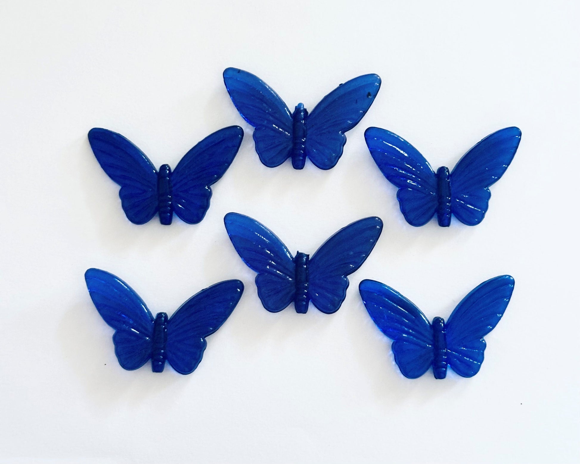 Royal blue butterfly charms, perfect for creating unique necklaces, bracelets, and other creative accessory designs. Pack of seven beads. Size 45x20 MM.