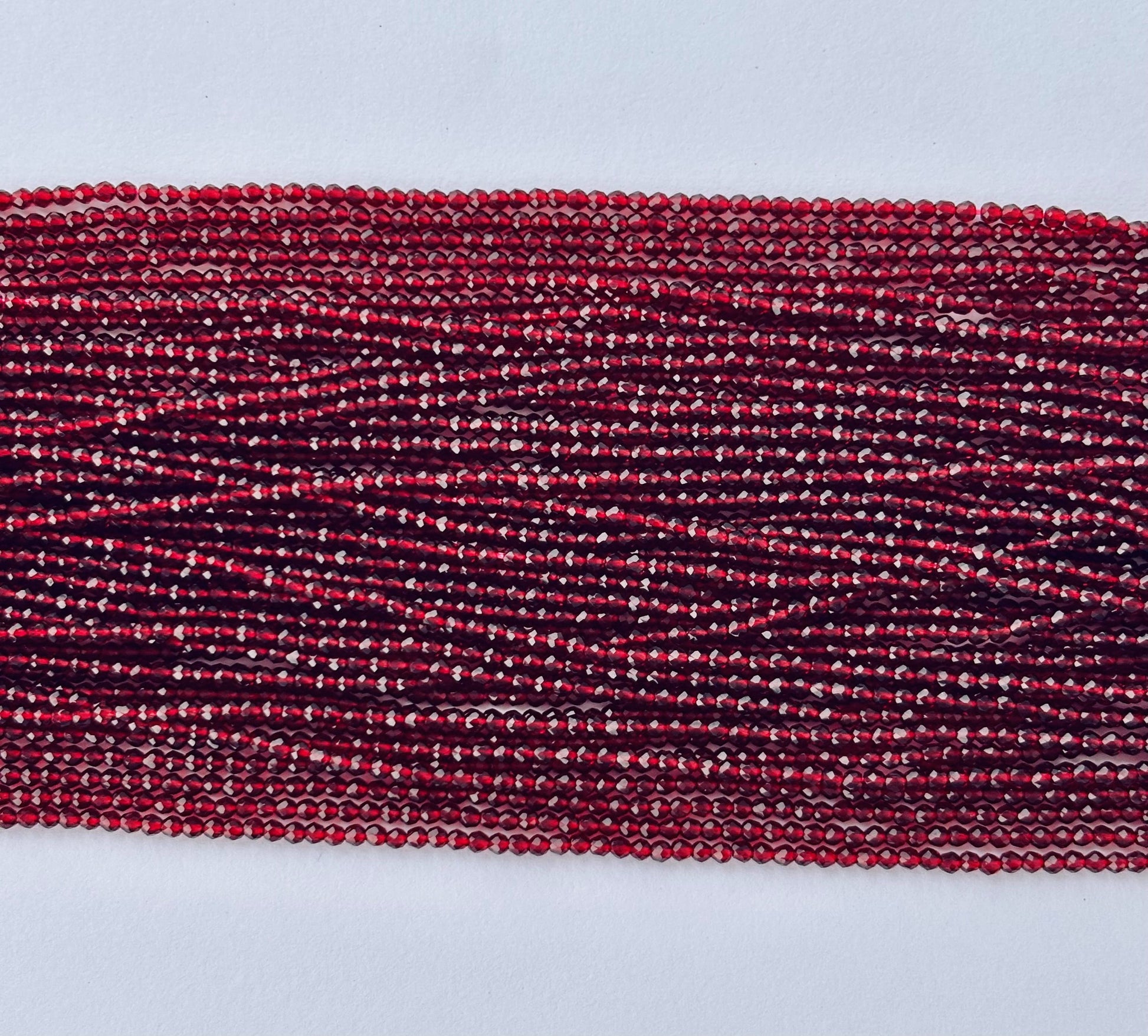 Discover luxurious ruby red faceted hydro beads, perfect for adding a sophisticated and deep, rich sparkle to your elegant jewelry creations. Pack of 5 strands; length 14inches; size 2mm; total of 950 beads approximately.