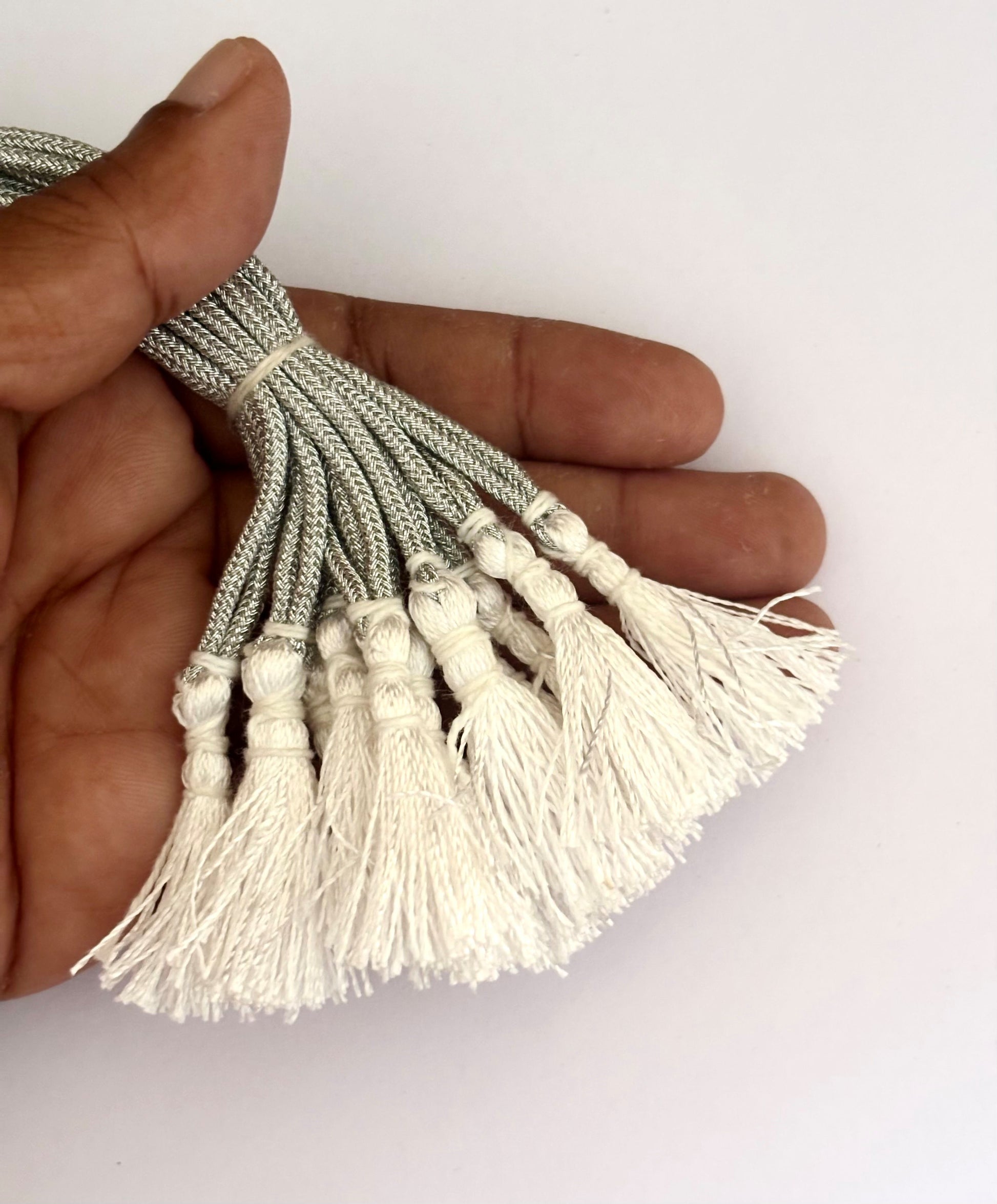 This elegant silver-tone braided cord extension with a decorative tassel and a secure lobster clasp is perfect for adjusting the length of necklaces and pendants, offering a sophisticated finish. Pack of two pieces. Total length 22.5 inches.