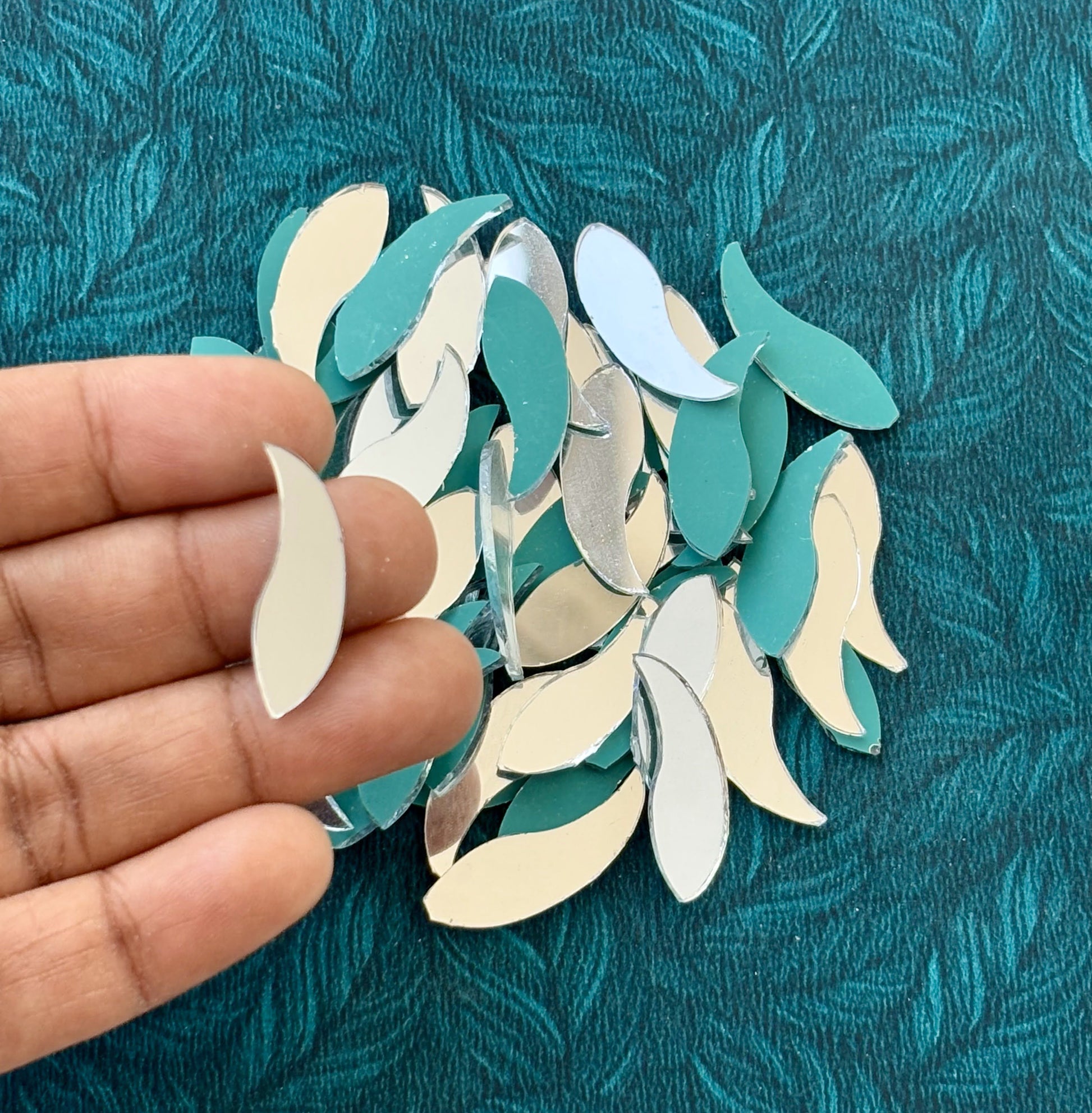 Silver Fancy Shape - Fish Cut Mirrors - Unique Decorative Mirror Pieces for Crafts, Lippan Art, Mandala Art, Art Projects, and Home Décor Accents. The pack has approximately 61 pieces.