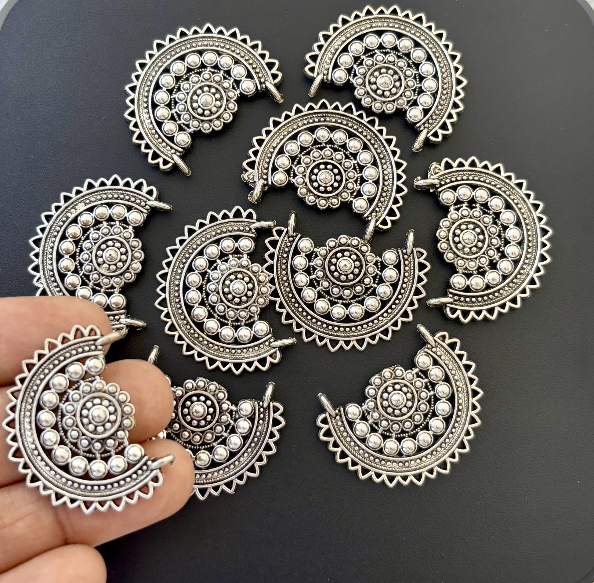 Craft stunning earrings with these substantial silver-plated earring bases. Their intricate design provides a perfect foundation for unique DIY jewelry creations. Pack of 10 pieces.