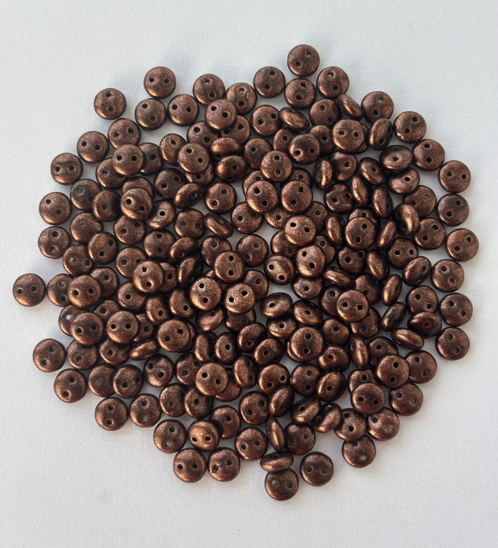 These sleek copper lentil-shaped beads offer a smooth, opaque finish, perfect for adding unique texture and depth to your necklaces, bracelets, and various jewelry designs. Size 6MM. Pack of 171 beads approximately.
