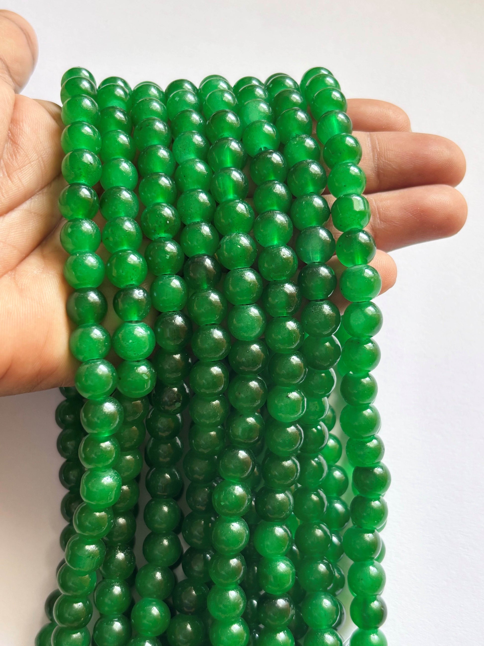 Discover bottle green jelly beads, perfect for adding a pop of translucent color to your jewelry designs and craft projects. Sold by single strand 8mm beads measuring 15 inches with 53 beads approximately.