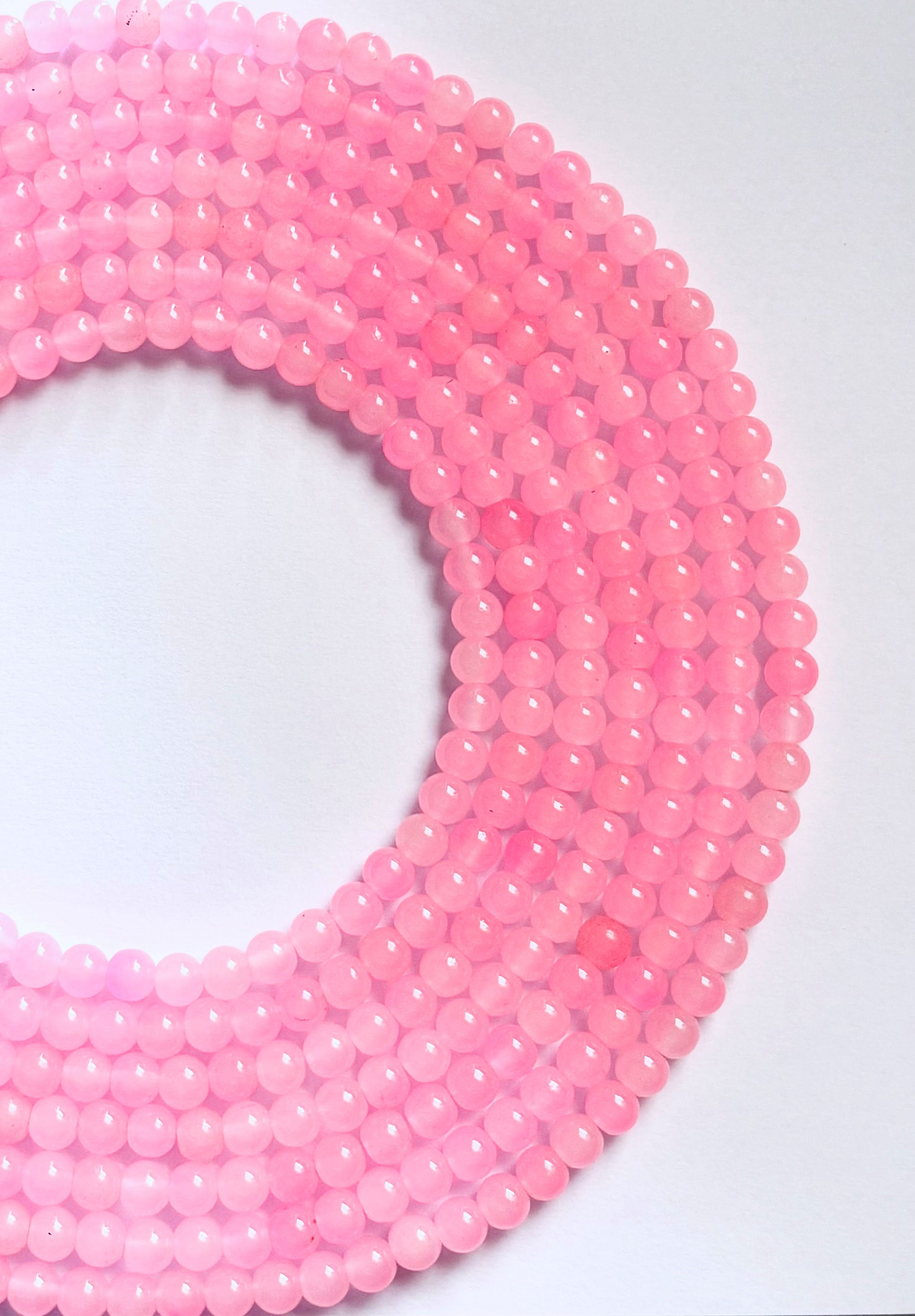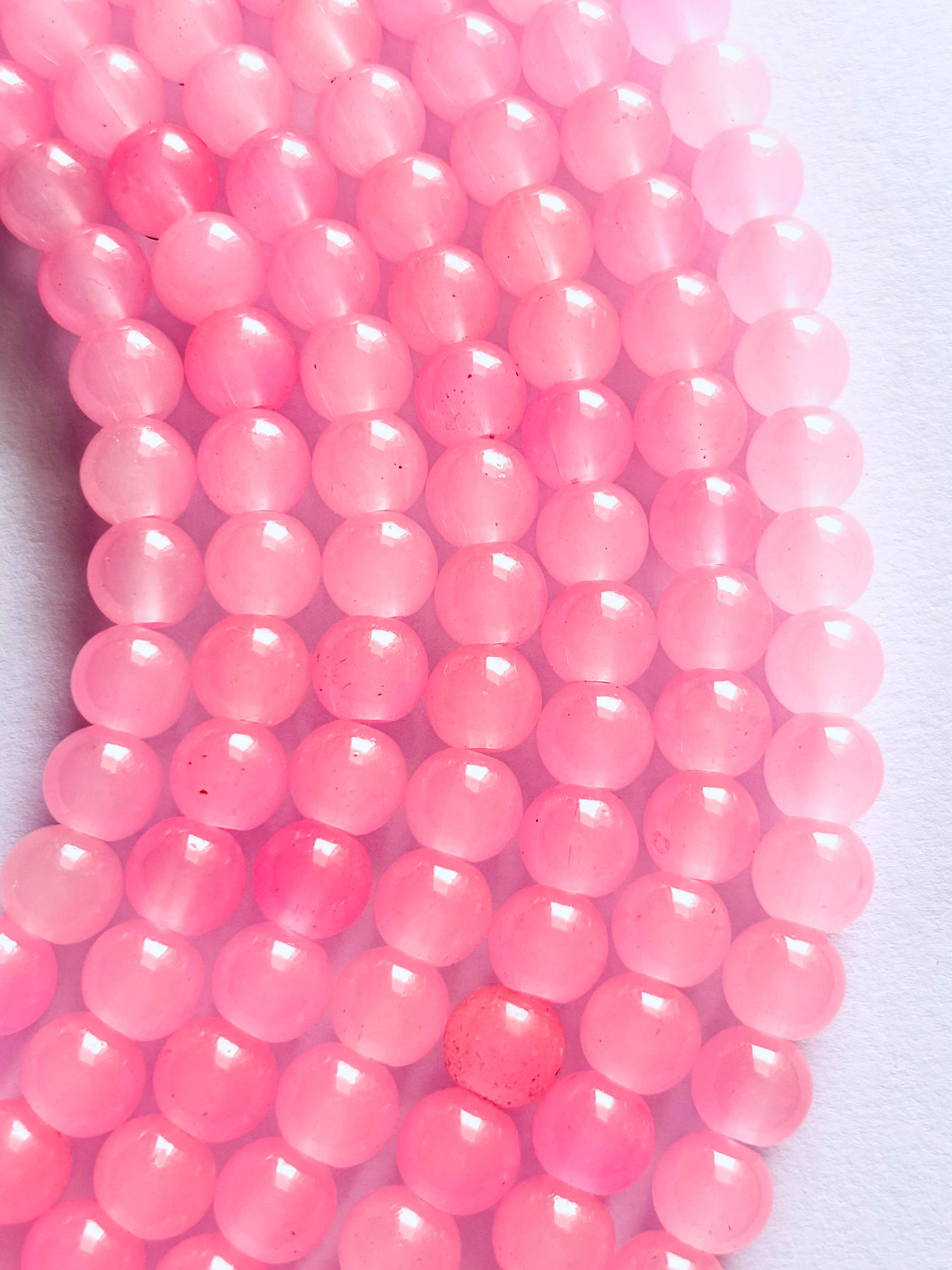 Discover pink jelly beads, perfect for adding a pop of translucent color to your jewelry designs and craft projects. Sold by single strand 8mm beads measuring 14 inches with 50 beads approximately.