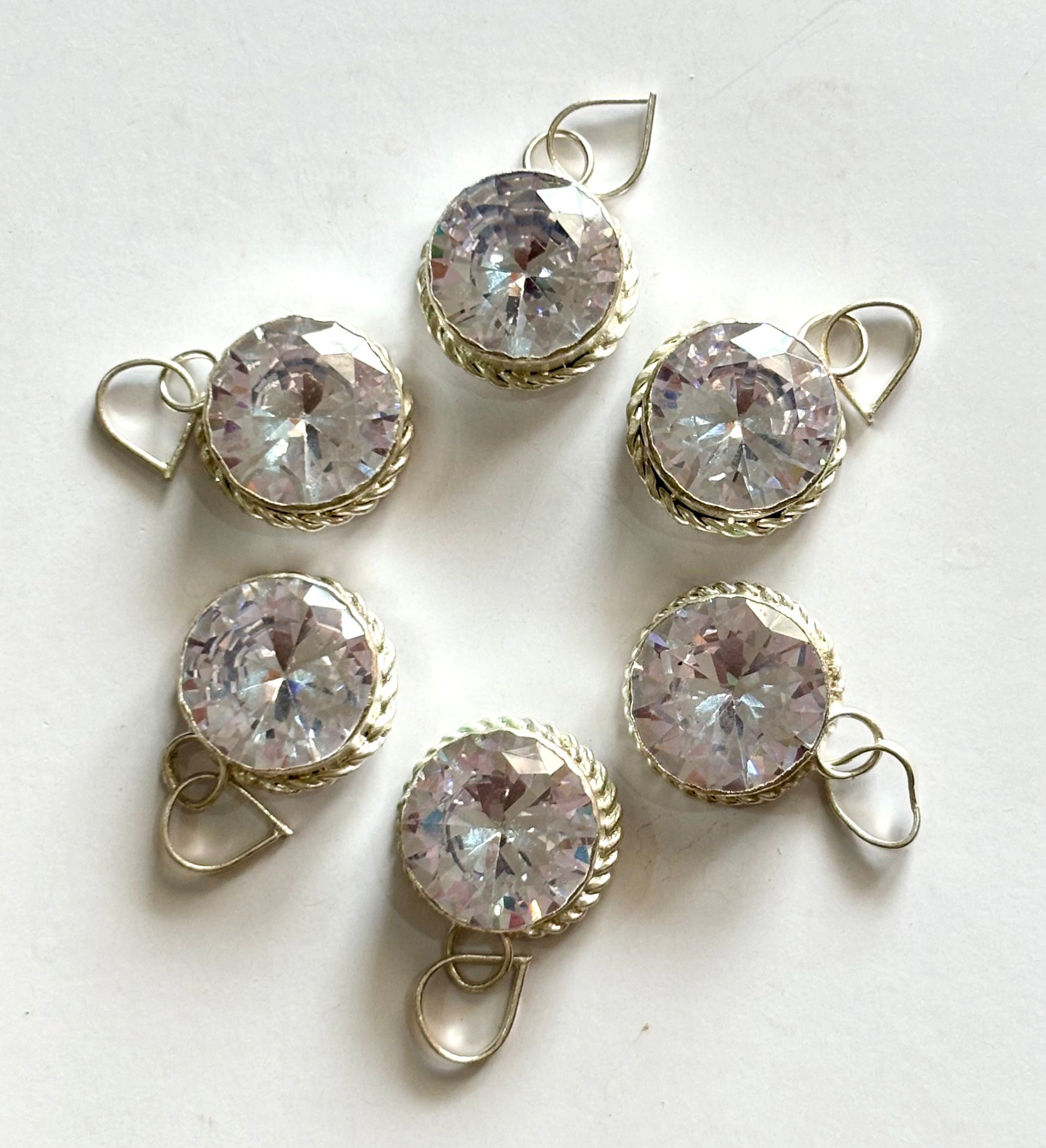 Discover these radiant faceted clear stone pendants, encased in a stylish silver-tone bezel with a classic twisted rope design. Sold as a single piece.