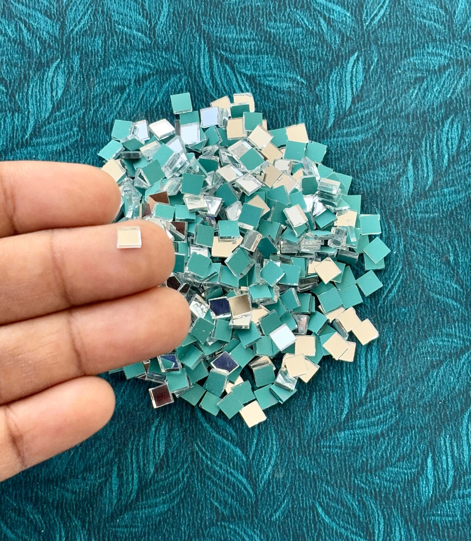 Find high-quality Square shape glass mirror cut work for Lippan art, mandala patterns, and craft. The Square cut mirrors in silver finish are available in a size range of 4mm to 20mm. Perfect for DIY, home decor, and festival decoration.