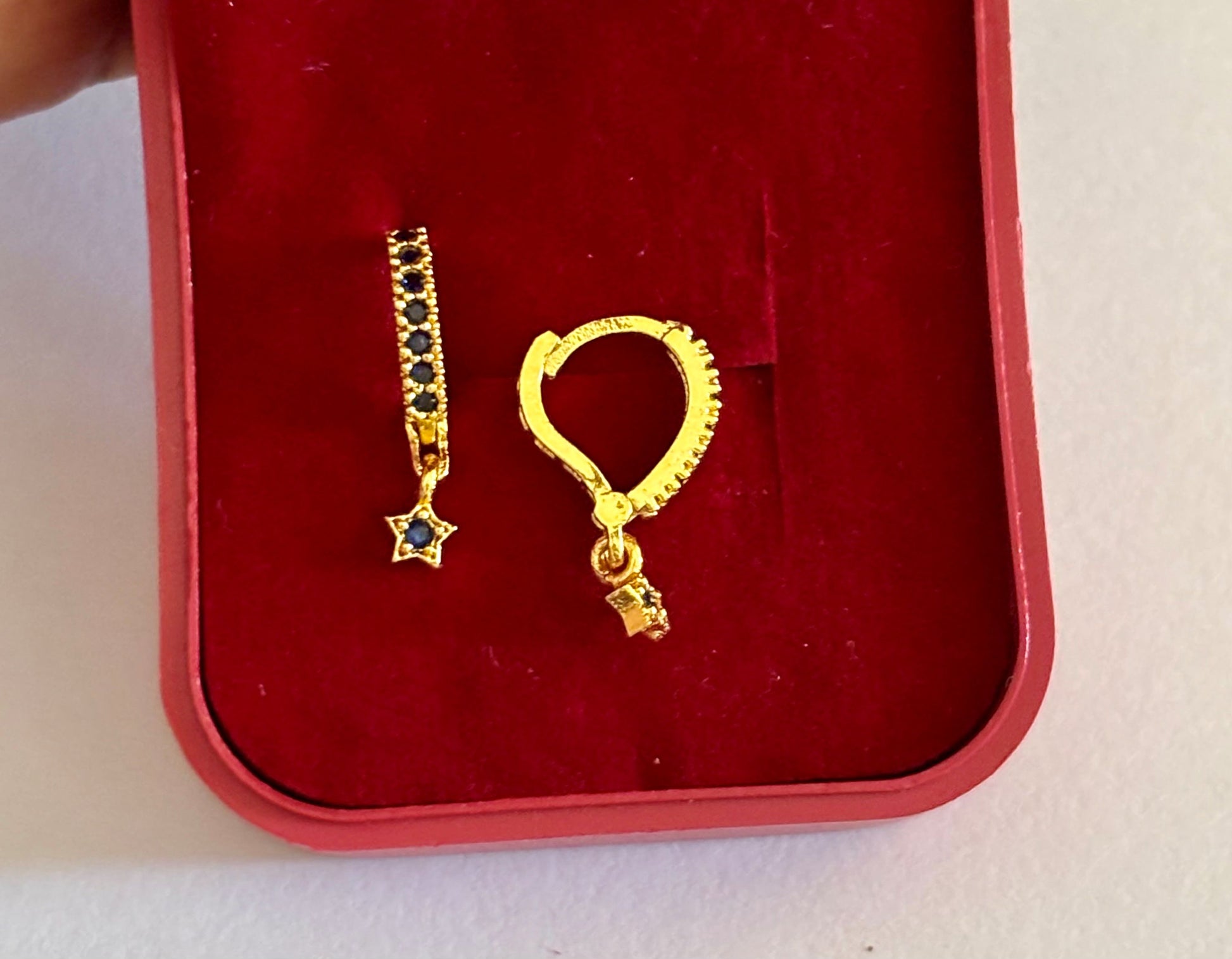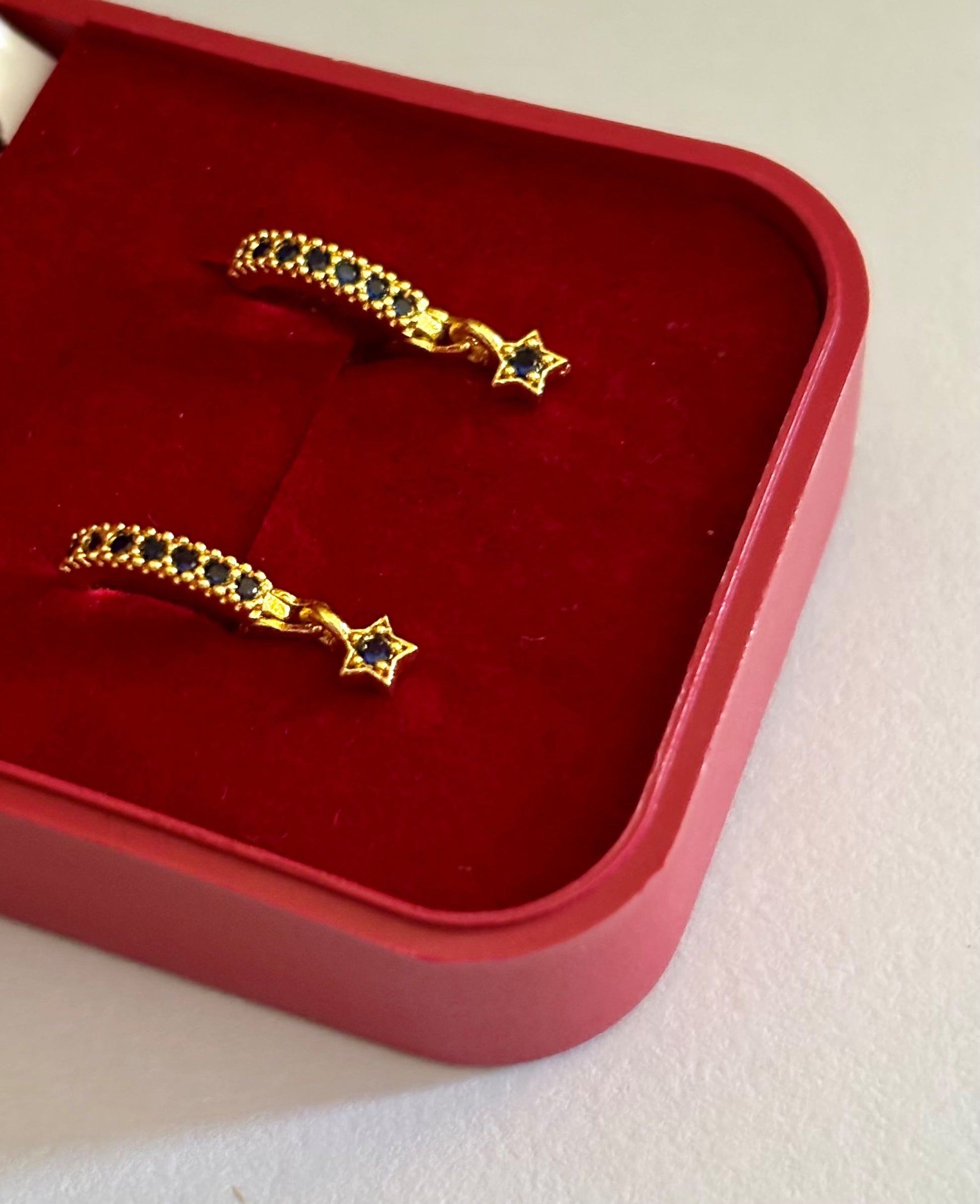 Star Charm Huggie Earrings with Blue Sapphire Stones