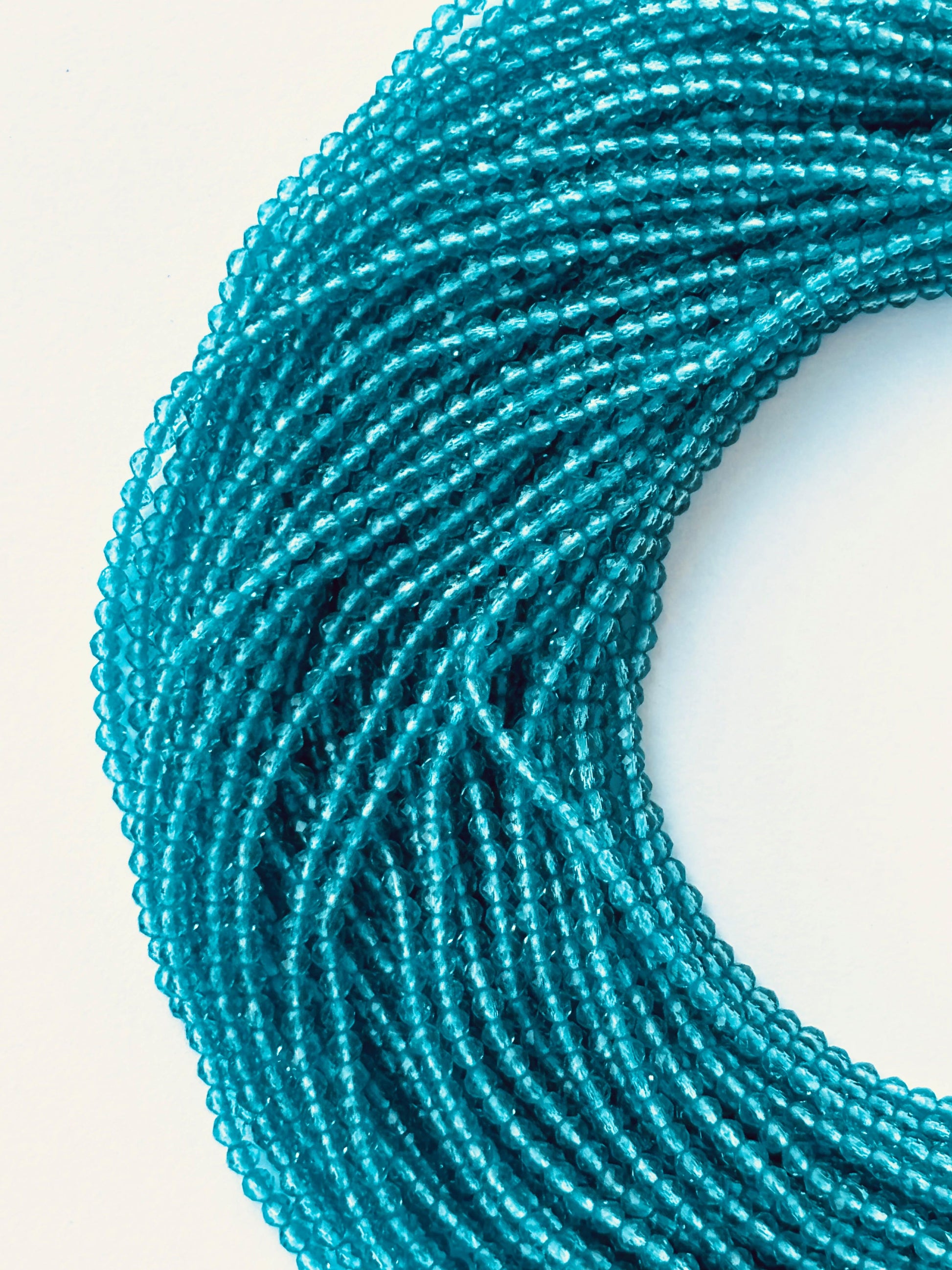 Dive into creativity with stunning teal blue faceted hydro beads, perfect for adding a captivating pop of ocean-inspired color to your jewelry designs. Pack of 5 strands; length 14inches; size 2mm; total of 950 beads approximately.