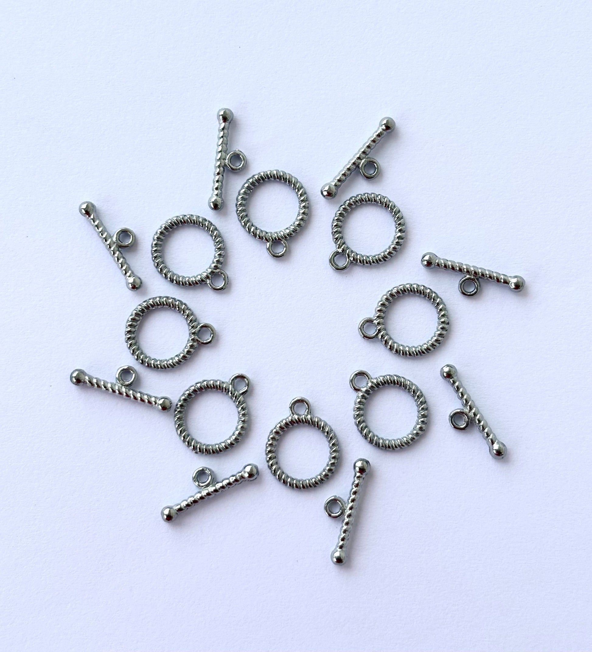 Add a decorative and secure finishing touch to your DIY jewelry projects with these elegant twisted T-bar toggle clasps. Pack of 10 pieces.
