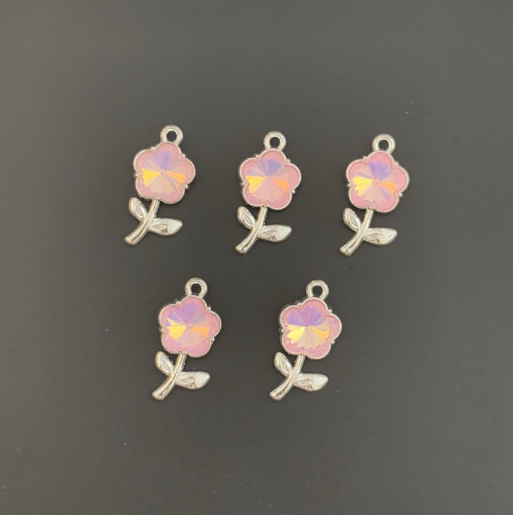 Give your designs a touch of glitter with these shimmering pink flower charms. Great for earrings, necklaces, bracelets, or any craft project. Pack of two charms.