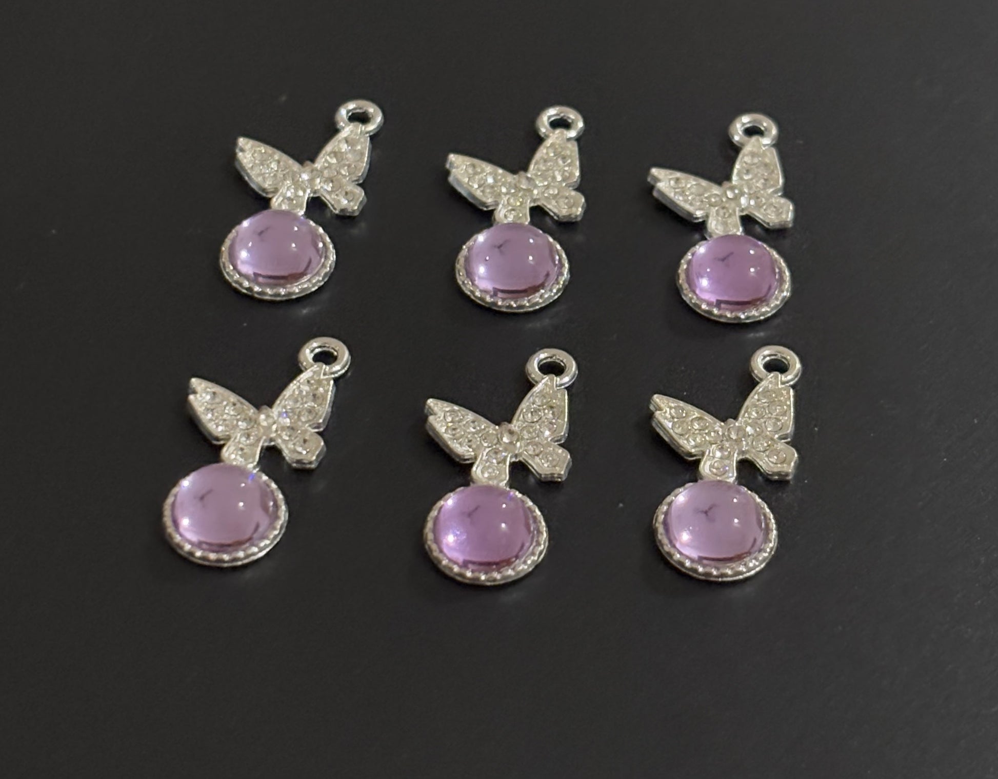Two Pieces Lavender Crystal Butterfly Charms