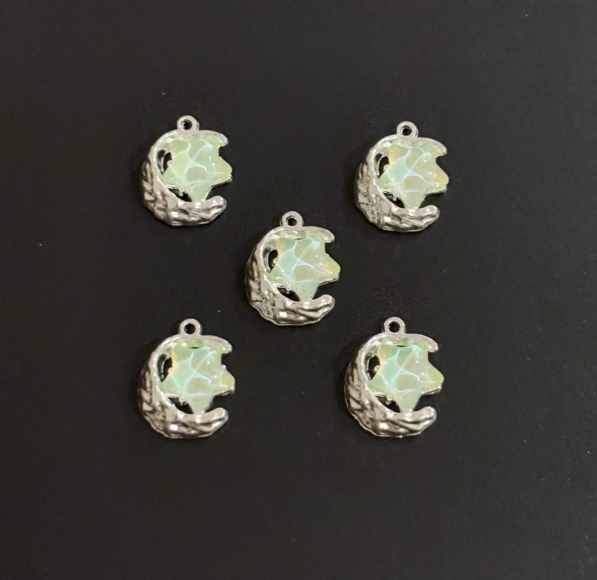 Give a touch of the cosmos to your designs with these soft green moon and star charms. Pack of two charms.