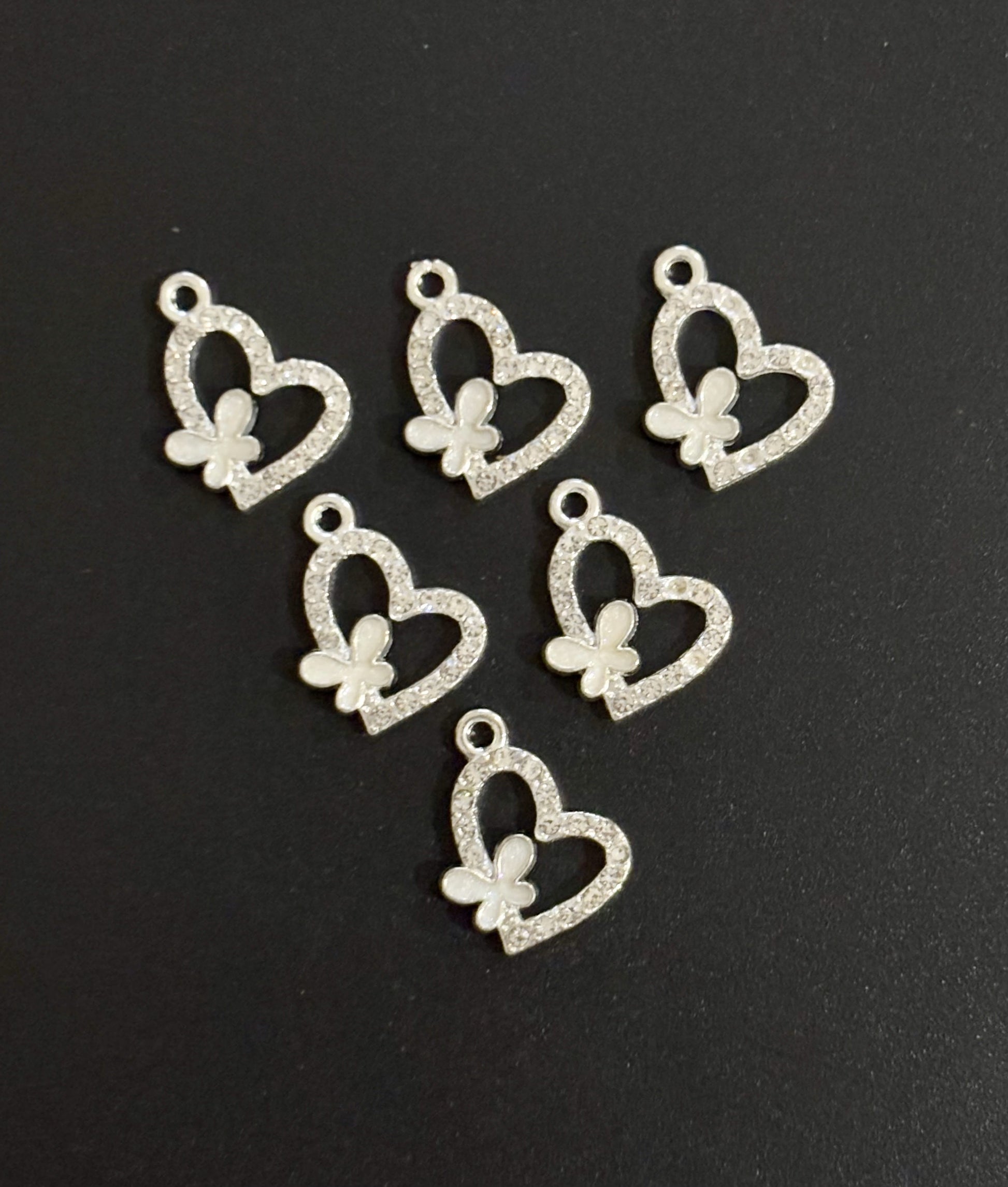 Two Pieces White Butterfly Heart Charms
