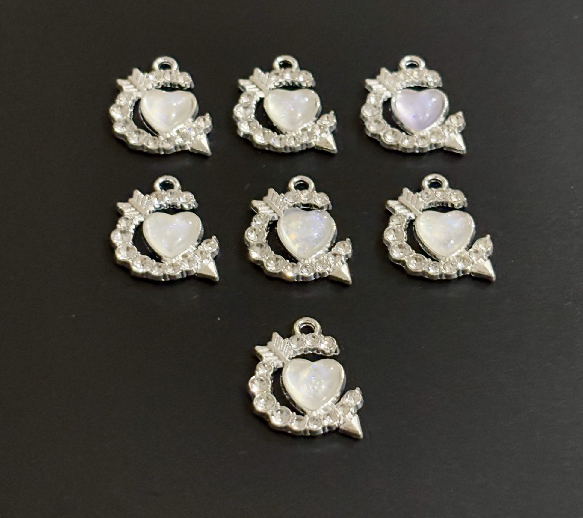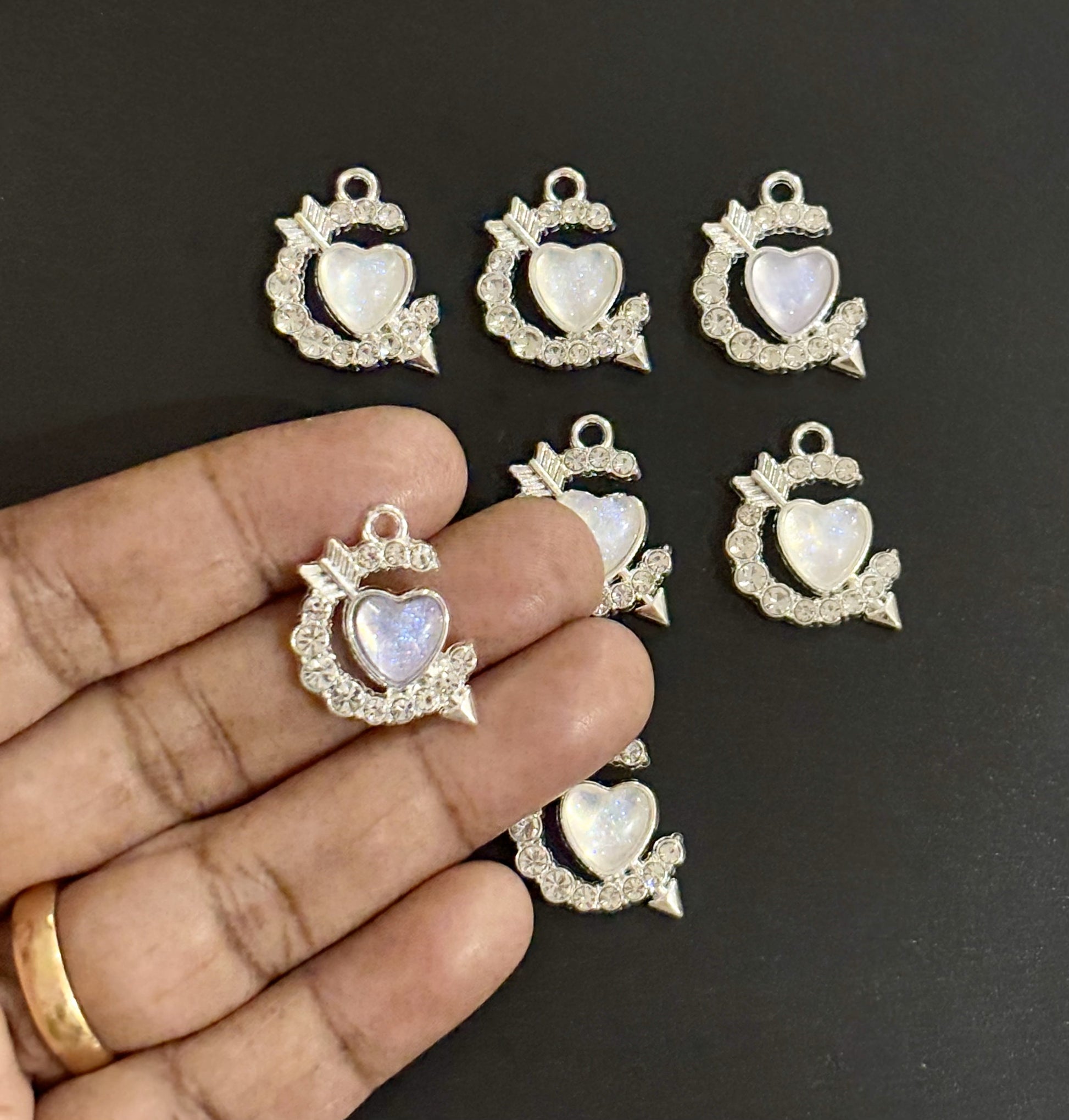 Accentuate your love-themed jewelry with these sparkly white heart arrow charms. Pack of two charms.