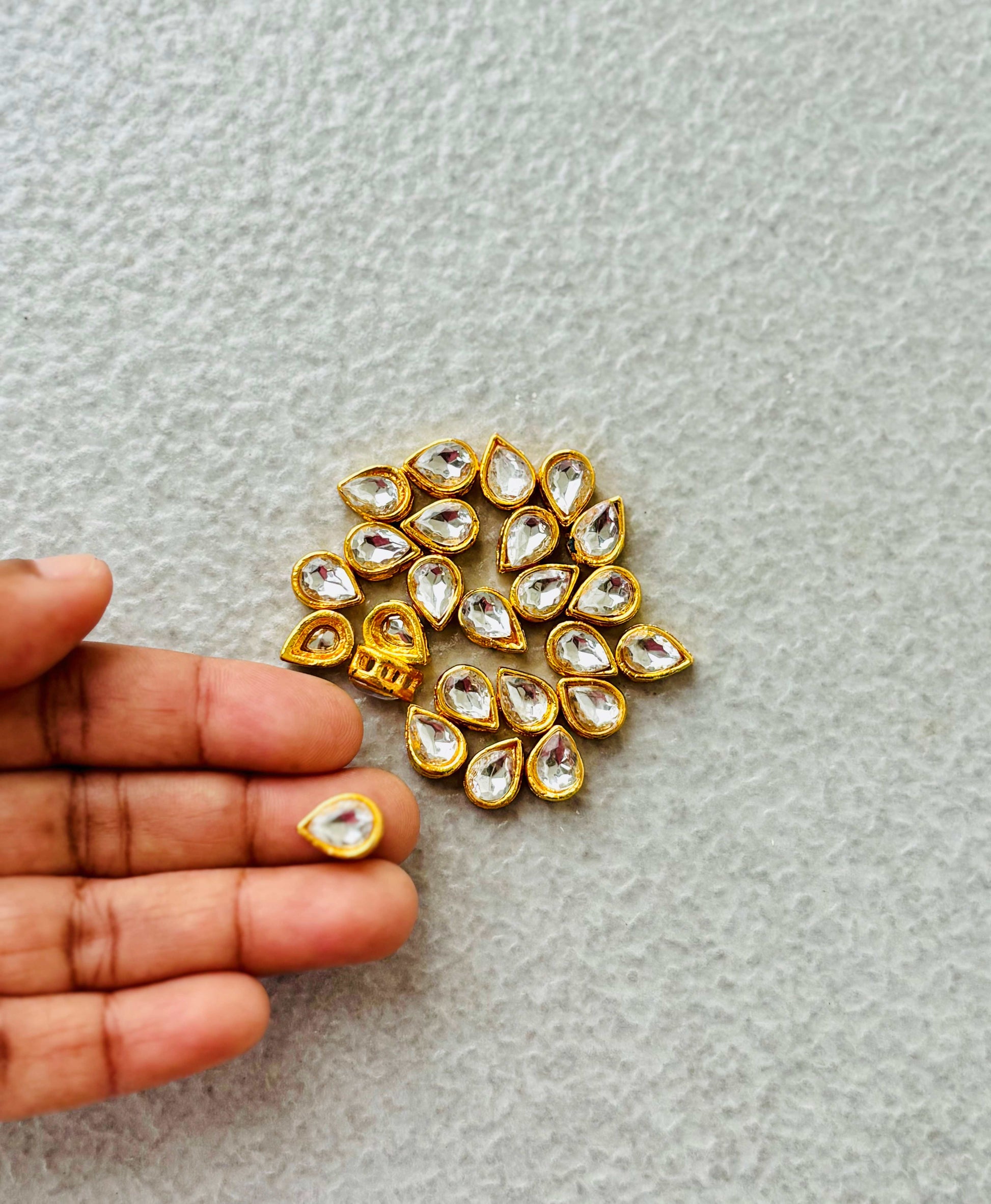 Classic white polki stone spacers in a gold drop setting, a versatile essential for all ethnic jewelry designs. Pack of 10 pieces.